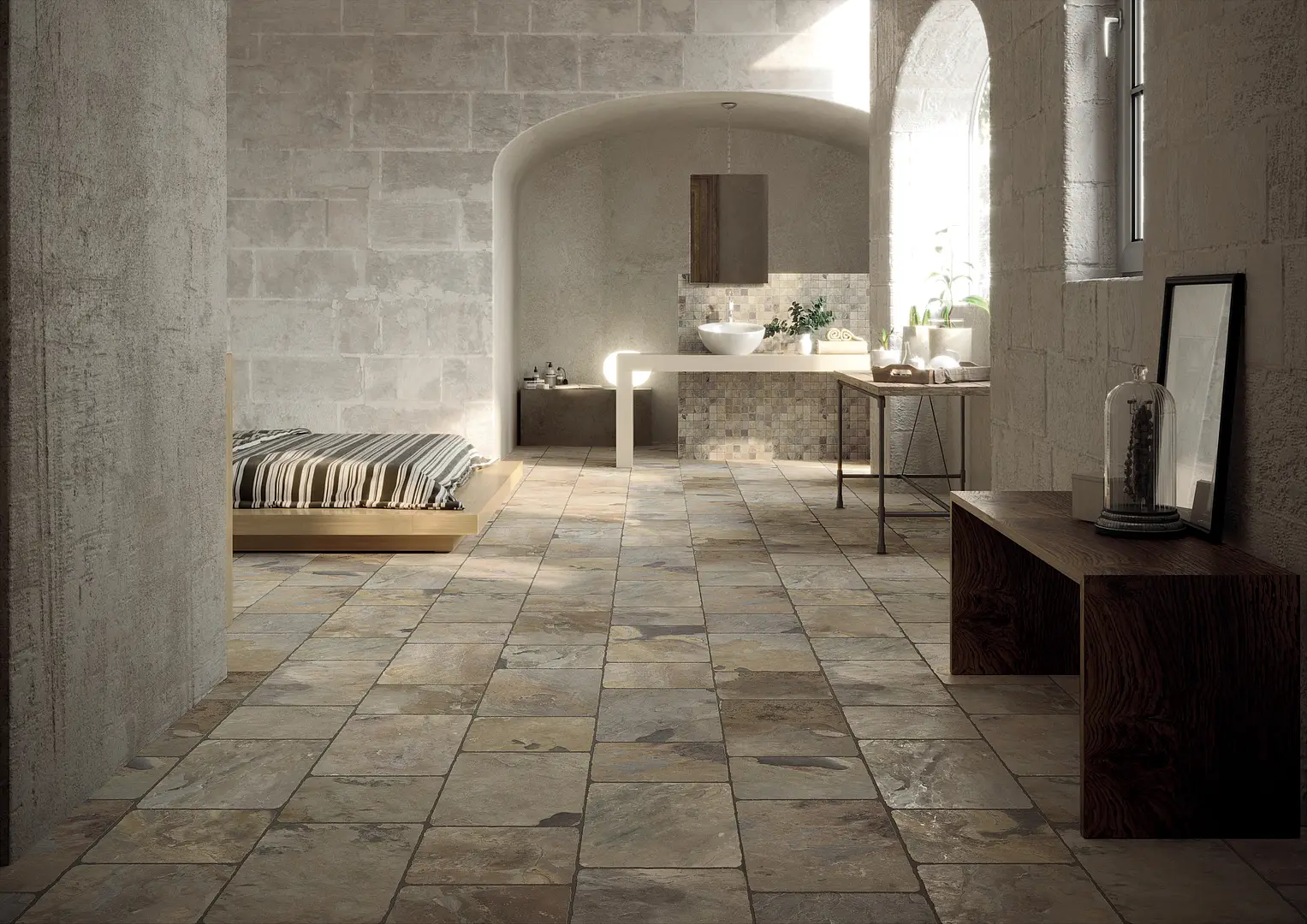 Керамічна плитка з колекції Flagstone Ermes виробництва Італія гарний вибір для покупки плитки у Києві. У салоні PLITKA.EU на проспекті Берестейський 20, на плитку найкраща ціна, безкоштовний 3D дизайн, доставка та гарантія.