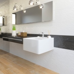 Колекція Blancos представлена плиткою форматом 30*60 із глянсовою рельєфною поверхнею чорного та білого кольорів. Крім базової плитки колекція доповнена двома квітковими панно розміром 60*60, що складаються з двох плиток, та мозаїкою, що складається з міксу чорних та білих кубиків 5*5 см, приклеєних на сітку шахівницею. Всі ці елементи дають можливість не обмежувати себе в ідеях для їхнього комбінування. Мозаїкою можна згладити контрастний перехід між чорною і білою плитками, або використовувати її самостійно, наприклад, облицьовувати панель ванною або одну стінку в душовій зоні. Панно допоможе наголосити на одній зі стін приміщення, воно може бути використане як у ролі одиночного елемента, так і у вигляді вертикальних або горизонтальних смуг.